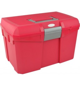 - Coffre de pansage bicolore en polypropylène avec couvercle renforcé pouvant faire office de tabouret, de montoir, de siège pour faire la crinière ou natter.