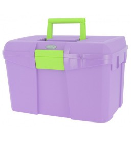 - Coffre de pansage bicolore en polypropylène avec couvercle renforcé pouvant faire office de tabouret, de montoir, de siège pour faire la crinière ou natter.